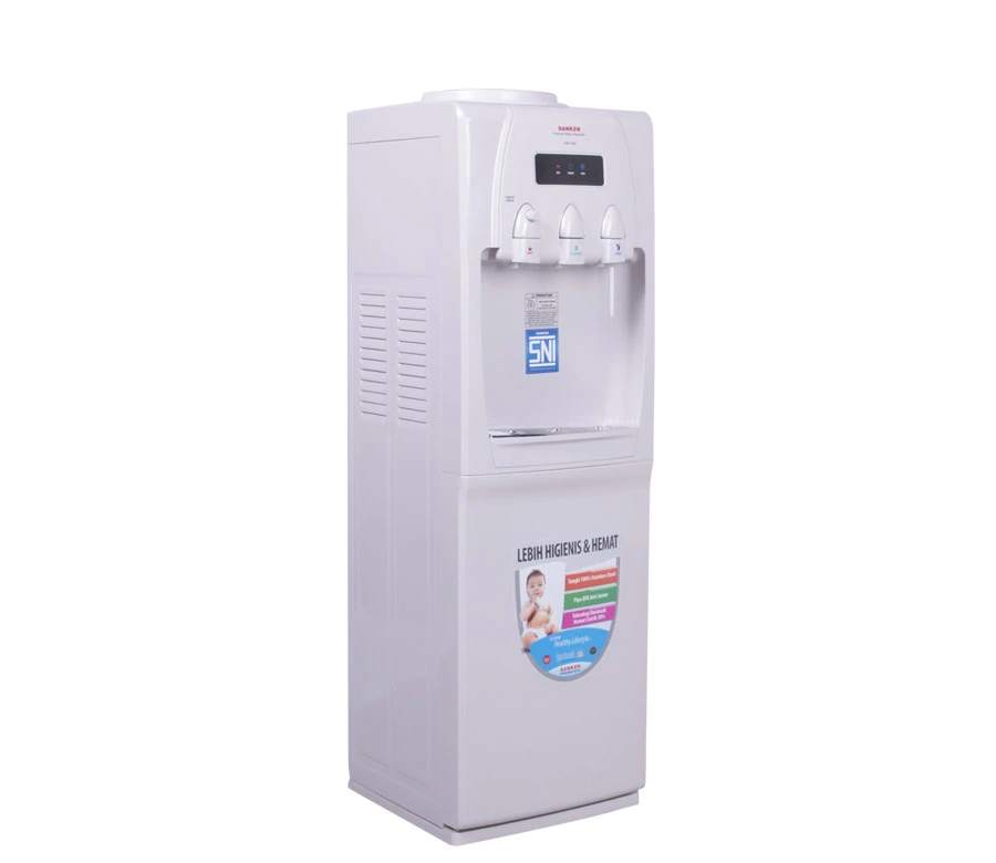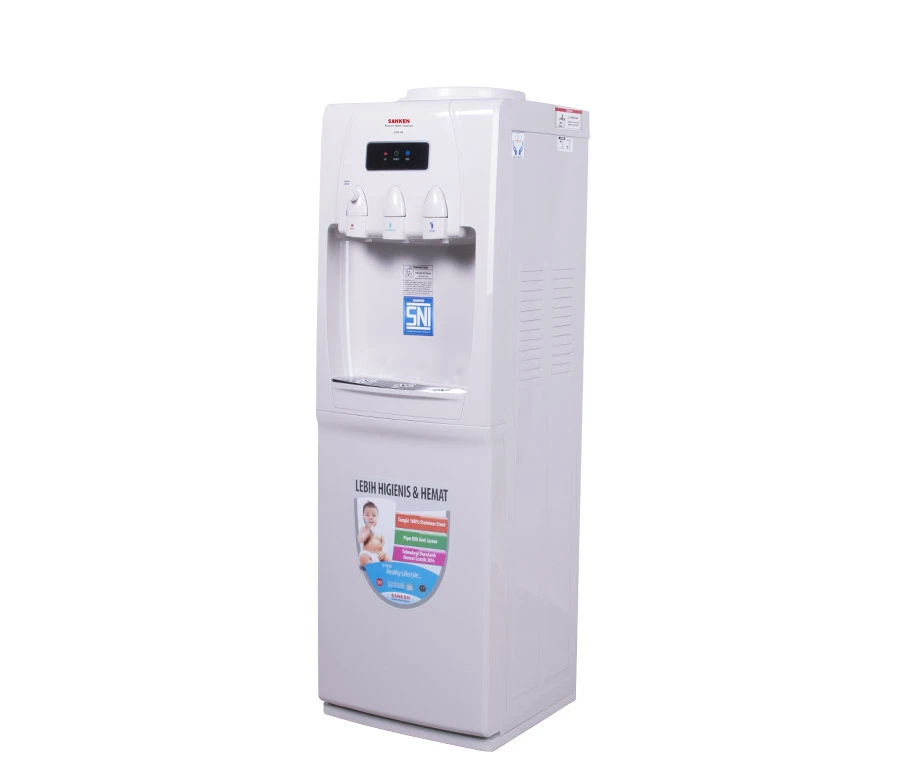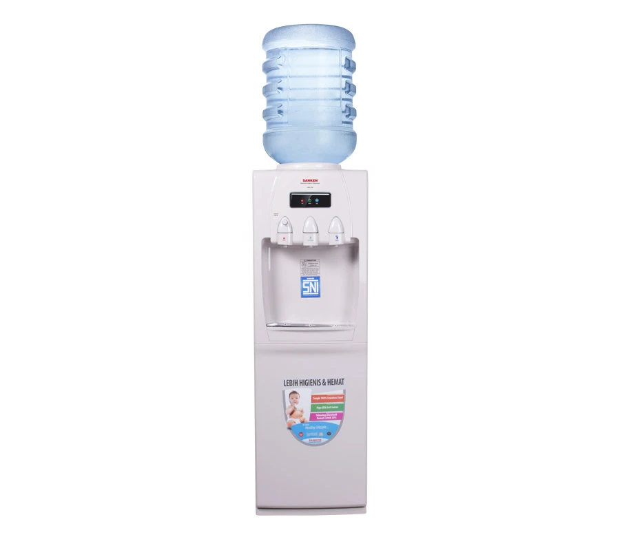 Sanken Water Dispenser HWD-760 [Hot-Normal-Cool] Tangki air terbuat dari 100% Stainless Steel dengan tekcnologi pengelasan laser dari luar tangki dan tanpa proses bahan kimia. Tangki terlihat bersih, anti karat dan lebih higienis. Pipa berbahan QYA yang anti jamur, kuman dan bakteri. Menjamin suplai air tetap bersih higienis, tidak berbau, aman di minum dan sehat. Tangki air dingin dan air panas yang terbuat dari stainless steel, dilindungi oleh lapisan PU. Menjaga suhu air tetap stabil lebih lama. Hemat listrik hingga 30%.