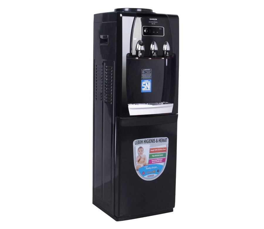 Sanken water dispenser HWD-Z90 dispenser duo gallon berteknologi Z-Pipe, dengan kemampuan menyedot air hingga kedasar air tanpa sisa. Menggunakan tangki air berbahan stainless steel yang anti karat serta pipa qya bactic clean pipe, menjamin tersedianya air secara sehat dan higienis. Menambah kesan premium & modern di rumah Anda.