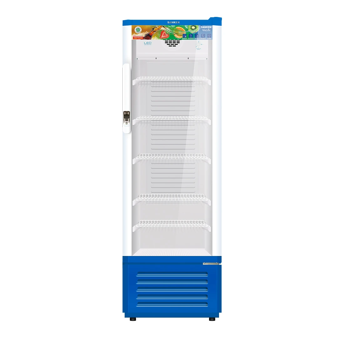 Sanken SRS-275P-BL merupakan showcase yang dilengkapi Multi Easy Shelf dengan rak kuat dan fleksibel yang dapat diatur ketinggiannya serta mampu menahan beban hingga 35 kg. Dilengkapi pintu kaca tempered glass lapis ganda, Easy Thermostat Controller, Auto Self-Evaporation, Super Bright Inner Light, dan flexi wheel with lock.