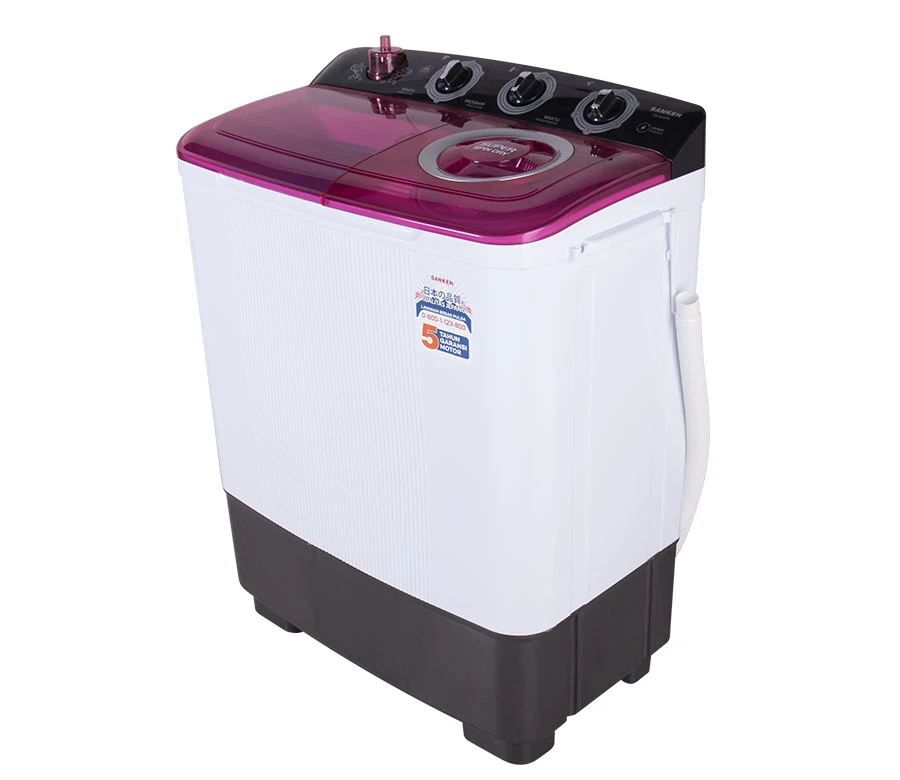 Sanken TW-883 mesin cuci dua tabung (twin tub) dengan design yang elegan dan memiliki 2 pilihan warna yang menarik.